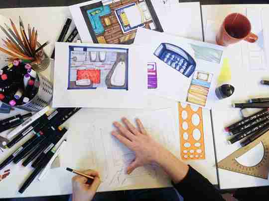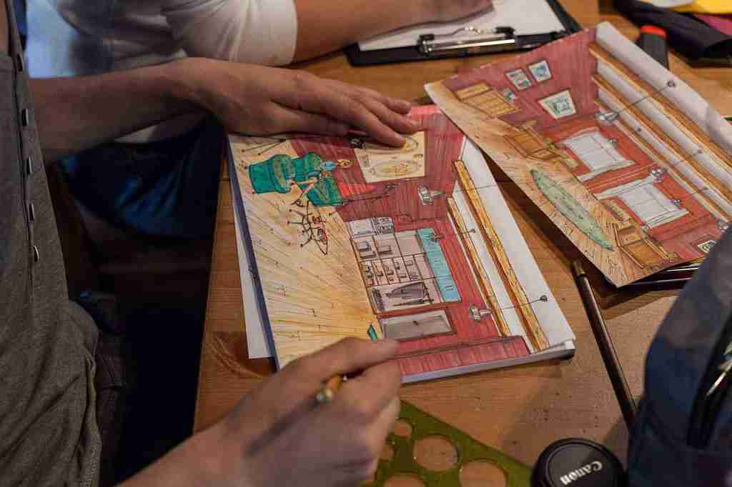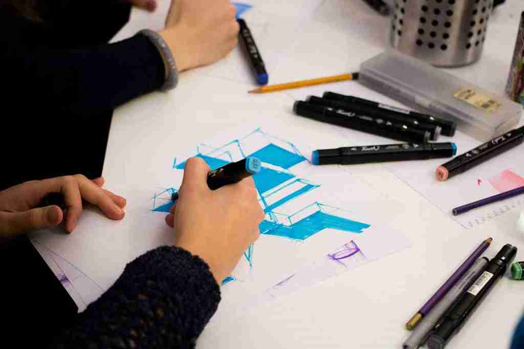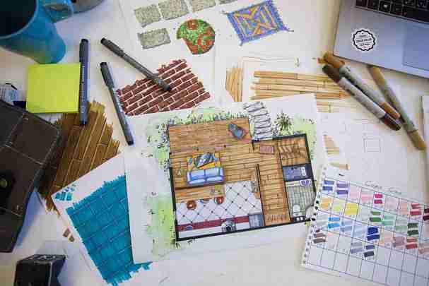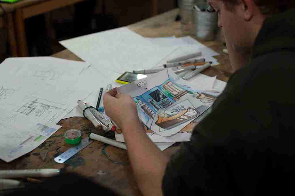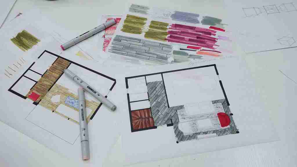 Двухдневный мастер-класс по интерьерному скетчингу. Разбирались в текстурах, рисовали мебель и интерьерные планы. Место проведения — студия рисования Пора Рисовать.