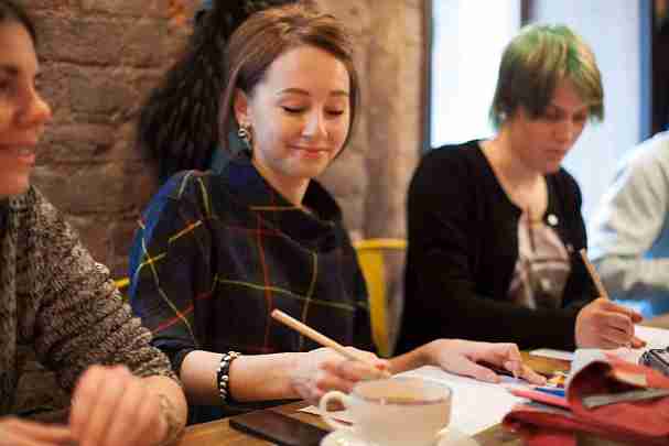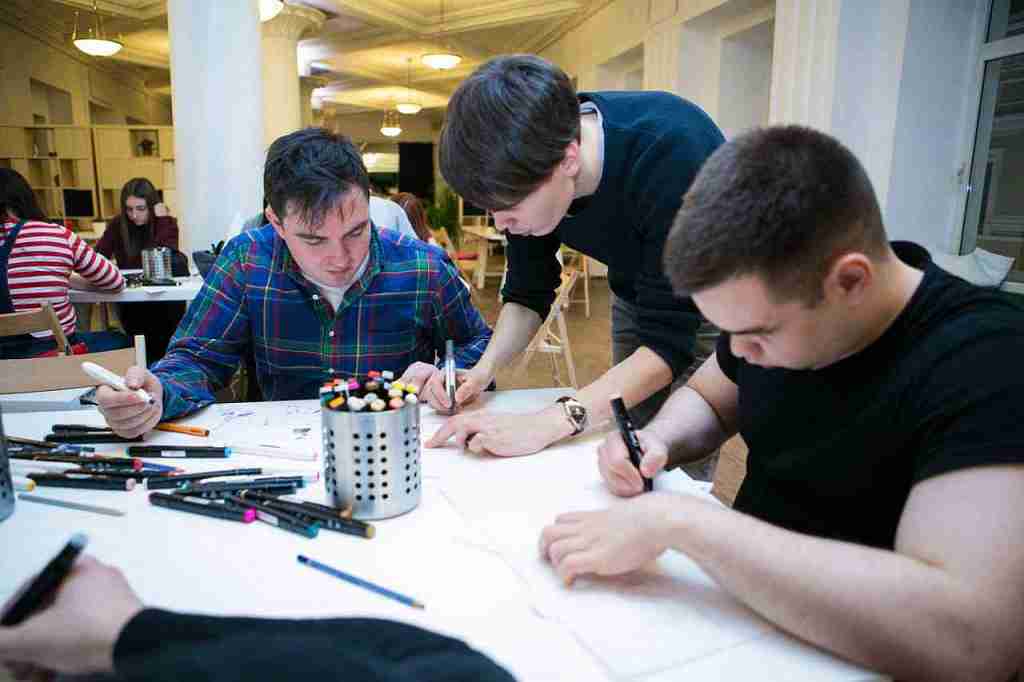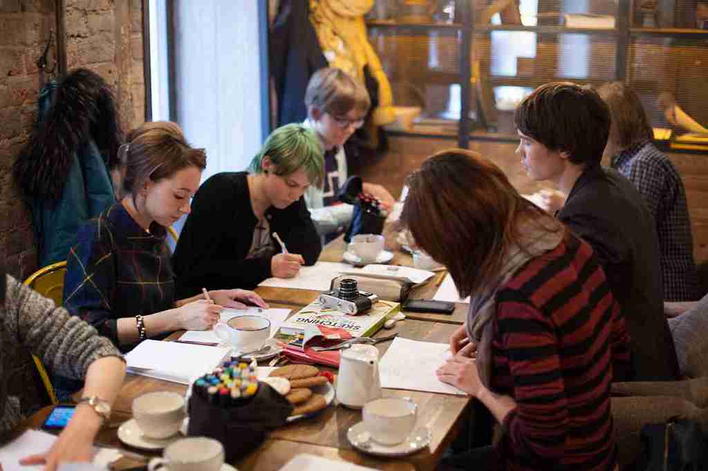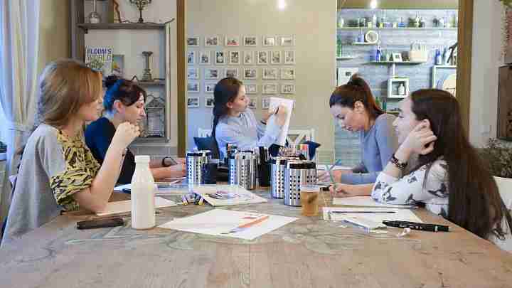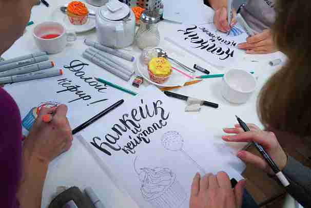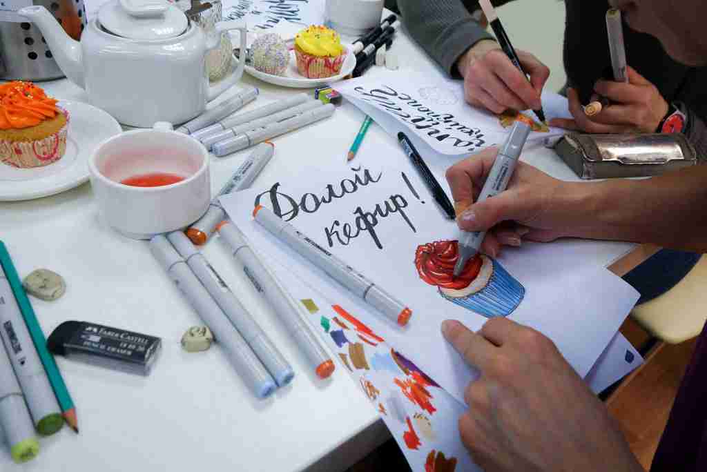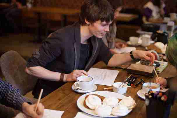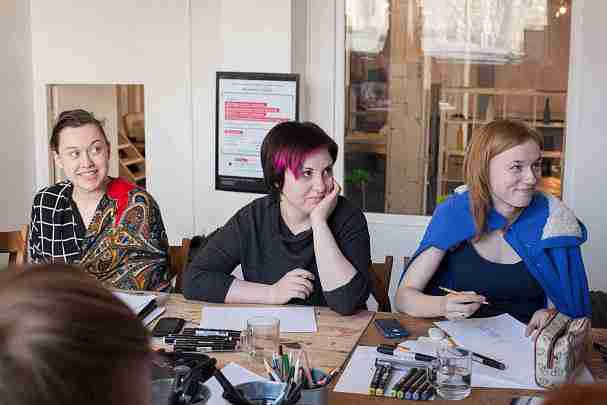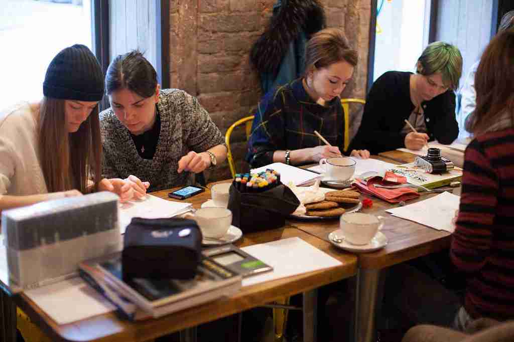 Мастер-класс по скетчингу, прошедший при поддержке школы дизайна Богемика. Место проведения — кафе-бар Funky Kitchen.