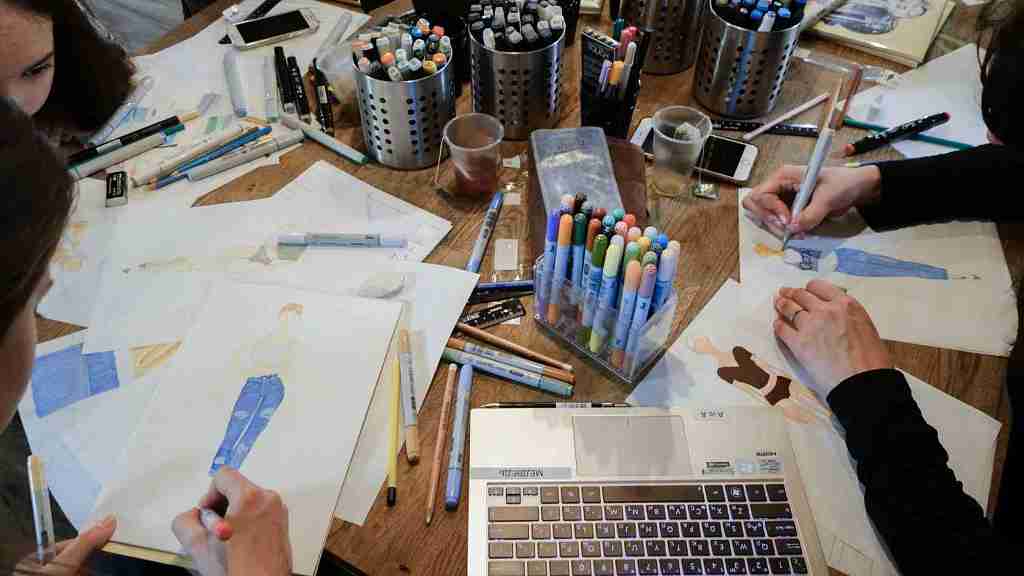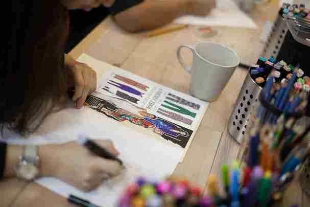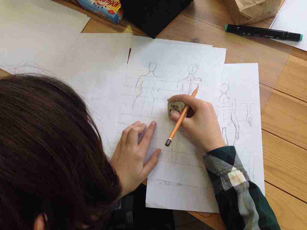 10 дней fashion скетчинга, полное погружение! Разбирали текстуры, построение фигуры и пропорции лица, учились создавать модные образы. Место проведения — уютная студия вязания Манефа.