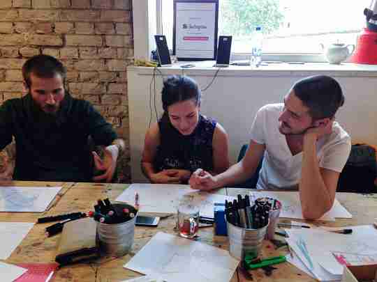 Интенсивный пятидневный курс. Мы рисовали, объединялись в команды, проектировали и фантазировали, отстаивали свои идеи! Место проведения — школа современной иллюстрации Miroedova school.