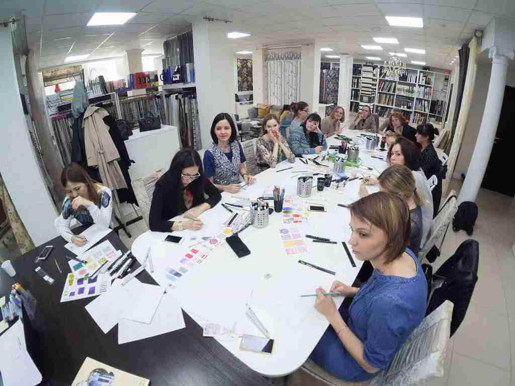 Насыщенный двухдневный курс по основам интерьерного скетчинга. Место проведения —гостеприимный салон Коллекционные обои.Ткани.Мебель.